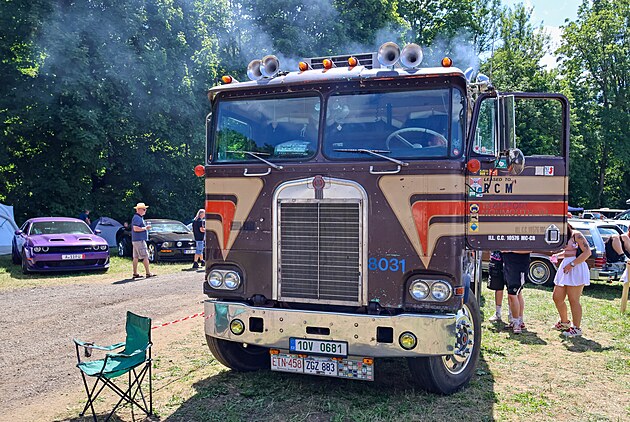 Na Pekelný ostrov u Holýšova na Klatovsku se sjely stovky historických i současných aut americké výroby s velkoobjemovými motory. (19. července 2025)