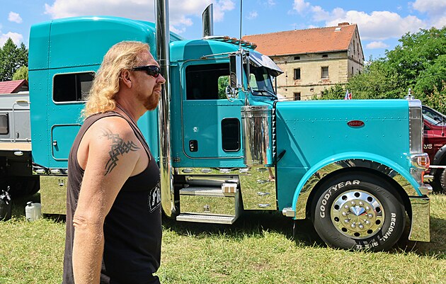 Na Pekelný ostrov u Holýšova na Klatovsku se sjely stovky historických i současných aut americké výroby s velkoobjemovými motory. (19. července 2025)