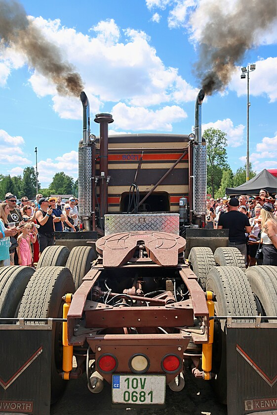 Na Pekelný ostrov u Holýšova na Klatovsku se sjely stovky historických i současných aut americké výroby s velkoobjemovými motory. (19. července 2025)