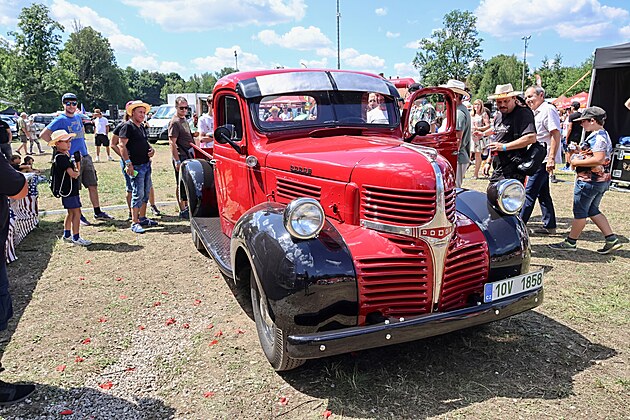 Na Pekelný ostrov u Holýšova na Klatovsku se sjely stovky historických i současných aut americké výroby s velkoobjemovými motory. (19. července 2025)