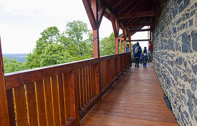 Na hrad Radyně se návštěvníci dostanou po nové lávce. Tu původní napadla dřevokazná houba a bylo jí třeba okamžitě nahradit. (18. května 2025)