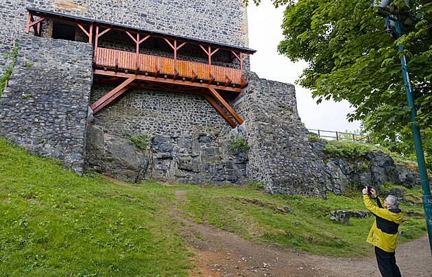 Na hrad Radyně se návštěvníci dostanou po nové lávce. Tu původní napadla dřevokazná houba a bylo jí třeba okamžitě nahradit. (18. května 2025)