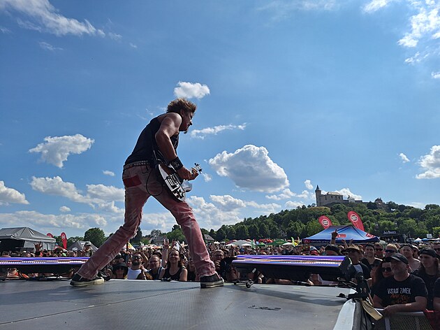 Kapela Visací zámek odpálila jednu pecku za druhou a publikum šílelo. Louka pod hradem se změnila v punkový kotel. (21.července 2025)