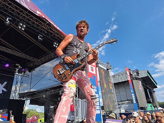 Kapela Visací zámek odpálila jednu pecku za druhou a publikum šílelo. Louka pod hradem se změnila v punkový kotel. (21.července 2025)