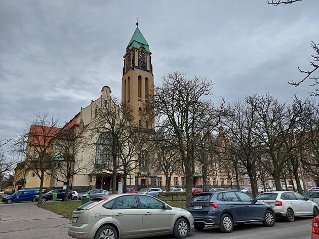 Projekt na přeměnu Jiráskova náměstí v Plzni je hotový, zbývá jen se do rekonstrukce pustit. U náměstí stojí kostel Panny Marie Růžencové. (2. ledna 2025)