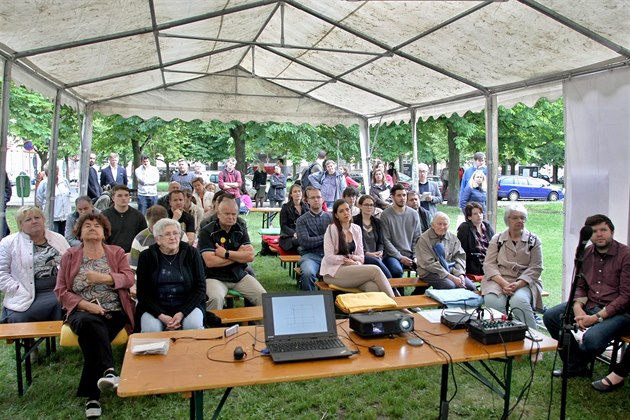 Zástupci Slovan a ateliéru re:architekti debatovali s obyvateli ohledně revitalizace Jiráskova náměstí. (17. 5. 2018)
