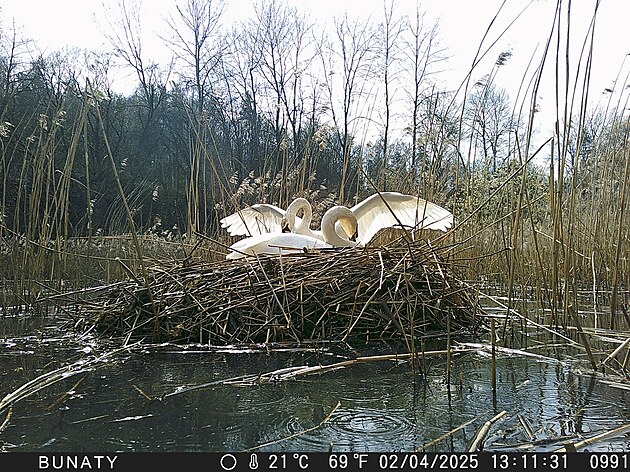Chlapeček s Josefínou aktuálně hnízdí na Pekelném rybníku u Vejprnic nedaleko Plzně.
