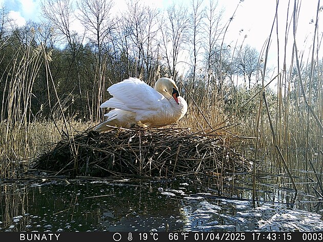 Chlapeček s Josefínou aktuálně hnízdí na Pekelném rybníku u Vejprnic nedaleko Plzně.