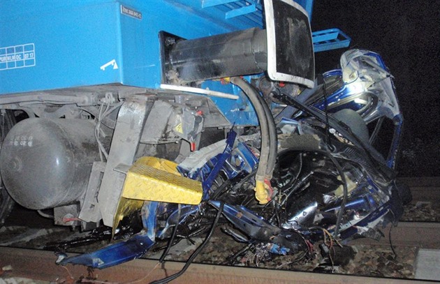 Vlak se s autem střetl v půl jedné v noci. Strojvedoucí nedokázal srážce s Renaultem Clio zabránit a vozidlo doslova sroloval pod lokomotivu.