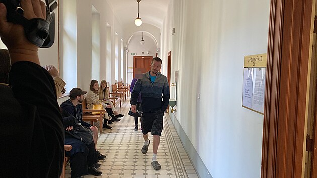 Ke Krajskému soudu v Plzni dnes přišel si vyslechnout zprošťující rozsudek pouze David Grundmann. (12. dubna 2024)