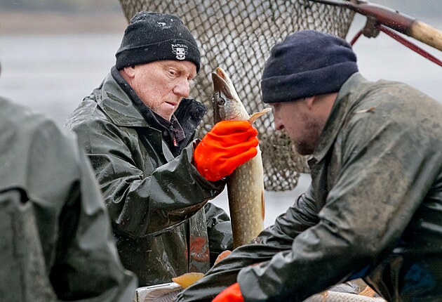 Výlov rybníka Hnačov na Klatovsku, na kterém hospodaří Klatovské rybářství. (24. října 2024)