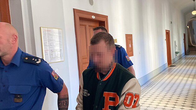 Čtyřiadvacetiletý Miroslav D. u Krajského soudu v Plzni. Mladíka žalobce viní ze znásilnění a pokusu o něj. (21. května 2025)
