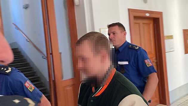 Čtyřiadvacetiletý Miroslav D. u Krajského soudu v Plzni. Mladíka žalobce viní ze znásilnění a pokusu o něj. (21. května 2025)