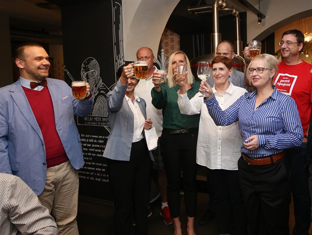Přípitek ve volebním štábu ODS (3. 10. 2020)