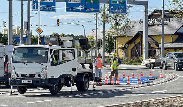 Stavební firmy dokončují rozsáhlou rekonstrukci kruhového objezdu na Nové Hospodě v Plzni. (18. září 2025)