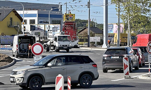Stavební firmy dokončují rozsáhlou rekonstrukci kruhového objezdu na Nové Hospodě v Plzni. (18. září 2025)