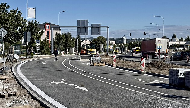 Stavební firmy dokončují rozsáhlou rekonstrukci kruhového objezdu na Nové Hospodě v Plzni. (18. září 2025)
