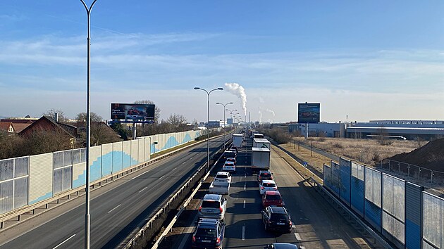 Několikakilometrová kolona se vytvořila na příjezdu do Plzně ve směru od Líní a dálnice D5. (3. března 2025)