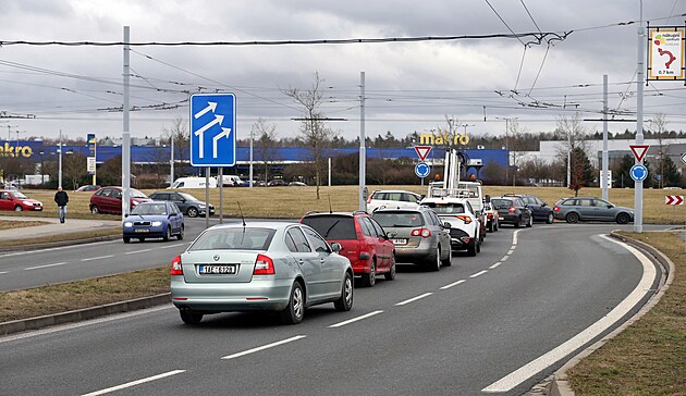 Kruhový objezd na domažlické výpadovce z Plzně má mít v budoucnu více pruhů, aby byl dostatečně průjezdný i pro automobily, které sem přivádí nový západní okruh Plzně. (1. února 2024)