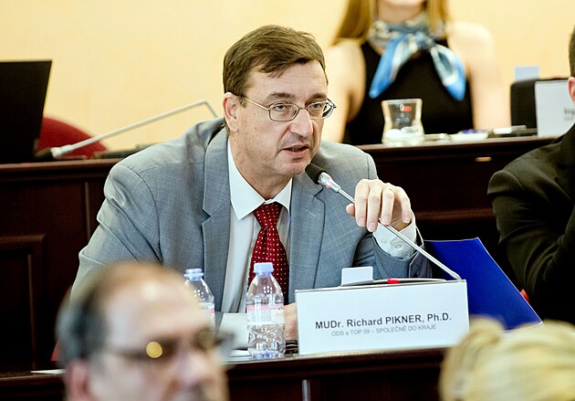 Ustavující zastupitelstvo Plzeňského kraje. Na snímku lékař Richard Pikner z TOP09/Společně do kraje. (30. října 2024)