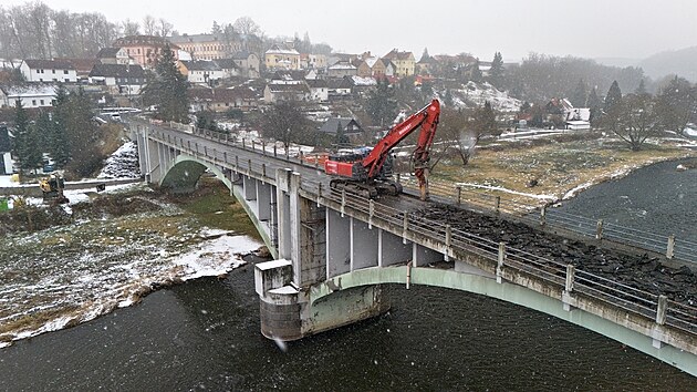 Silničáři začali opravovat v Liblíně na Rokycansku most přes Berounku, který byl v kritickém stavu. Osobní auta a autobusy převedli na provizorní most, nákladní doprava místo dlouze objíždí. (12. února 2025)