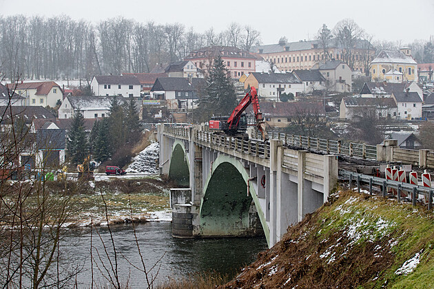 Most přes řeku Berounku v Liblíně na Rokycansku byl v havarijním stavu několik let. (12. února 2025)