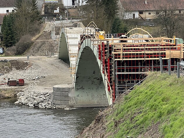 Rekonstrukce mostu přes Berounku v Liblíně na Rokycansku pokročila. Stavební firmy odstranily vozovku a většinu konstrukcí, zůstaly jen dva betonové oblouky, na nichž se most postaví znovu. (20. března 2025)
