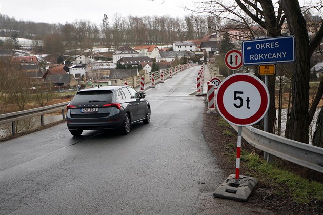 Most přes Berounku v Liblíně na Rokycansku je v havarijním stavu. Mohou na něj jen vozidla do pěti tun. (25. 1. 2021)