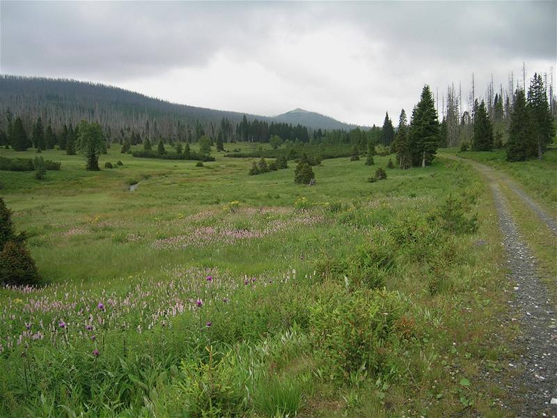 Luzenské údolí (v pozadí hora Luzný) - pohled od Březníku (Šumava)