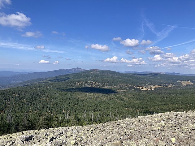 Pohled z vrcholu Luzný na Luzenské údolí. (7. září 2024)