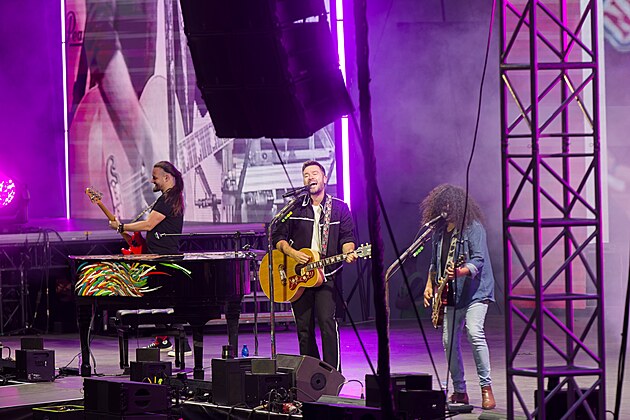 Marek Ztracený měl na koncertě dva klavíry. Jeden na pódiu, druhý mezi diváky. (30. srpna 2025)