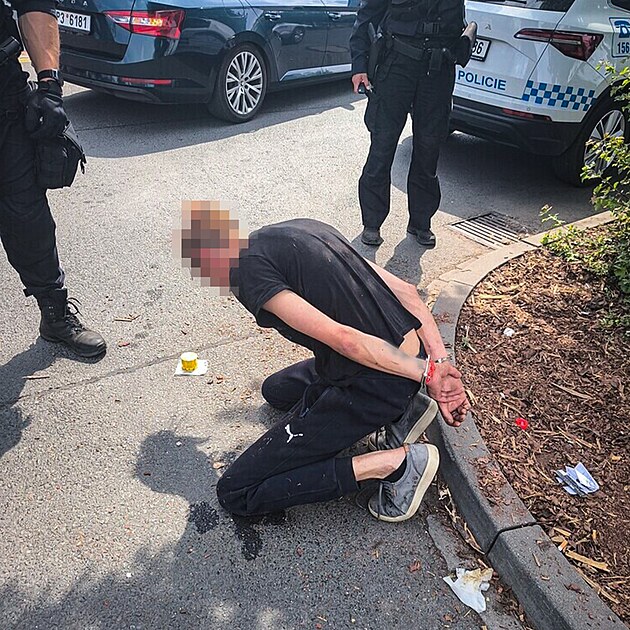 Od obchodního centra putoval zdrogovaný muž v želízkách rovnou na záchytku.