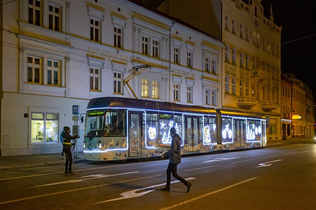 V neděli poprvé vyjela na svoji okružní jízdu po Plzni speciálně vyzdobená vánoční tramvaj. Kromě vnějšího polepu je vůz vyzdoben i uvnitř. (29. 11. 2020)