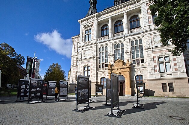 Plzeňský kraj představil na výstavních panelech před Západočeským muzeem v Plzni návrhy na revitalizaci budovy někdejších městských lázní. Ta chátrá, v budoucnu má být sídlem Západočeské galerie. (25. října 2023)