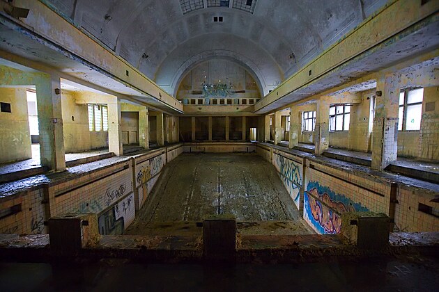 Interiér opuštěných Městských lázní v Plzni (5. prosince 2022)