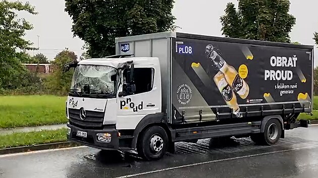 Ze stroje se za jízdy vysunulo rameno a trefilo kabinu protijedoucího auta