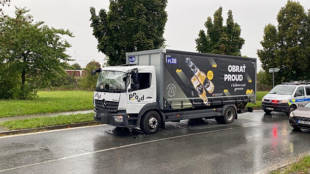 Z převáženého pracovního stroje se za jízdy uvolnilo rameno s ovládacím pultem a zdemolovalo kabinu protijedoucího nákladního auta. Nehoda se stala v Plzni na Jateční třídě. (5. září 2025)