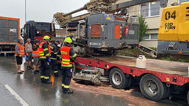 Z převáženého pracovního stroje se za jízdy uvolnilo rameno s ovládacím pultem a zdemolovalo kabinu protijedoucího nákladního auta. Nehoda se stala v Plzni na Jateční třídě. (5. září 2025)