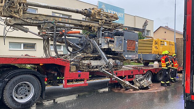 Z převáženého pracovního stroje se za jízdy uvolnilo rameno s ovládacím pultem a zdemolovalo kabinu protijedoucího nákladního auta. Nehoda se stala v Plzni na Jateční třídě. (5. září 2025)