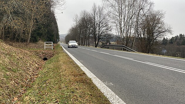 Místo, kde k tragédii došlo. Podle znalce je místo k přecházení nevhodné, je na horizontu, navíc tam končí les a stromy vytvářejí stín. (13. listopadu 2024)