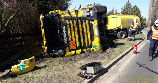 První nehoda se stala po desáté hodině ve Skašově. Třiapadesátiletý řidič jel s cisternou od Přeštic a část soupravy v obci převrátil na bok. Podle policie je příčinou nehody nesprávný způsob jízdy.