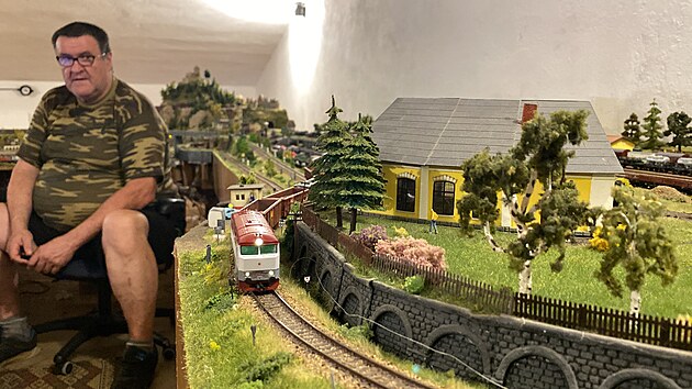 Jaroslav Navrátil modelové nádraží Nepomuk stavěl podle původních plánů reálného nádraží, jak vypadalo mezi lety 1905 až 1950. (2. července 2025)