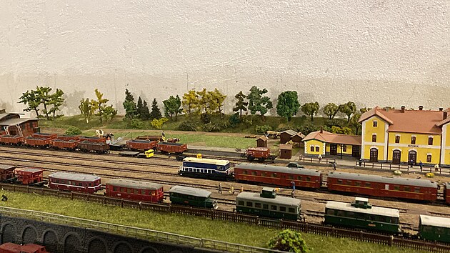 Jaroslav Navrátil modelové nádraží Nepomuk stavěl podle původních plánů reálného nádraží, jak vypadalo mezi lety 1905 až 1950. (2. července 2025)