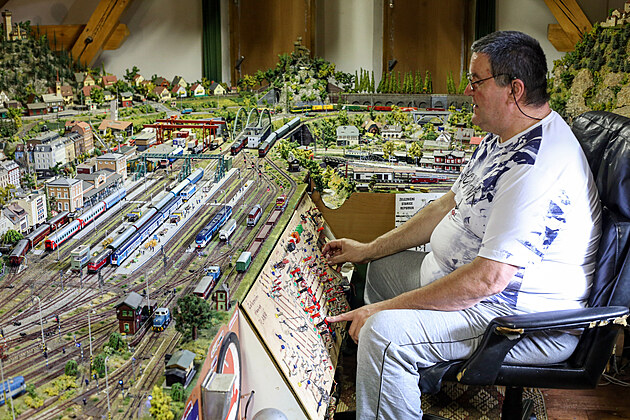 Jaroslav Navrátil z Vrčeně u Nepomuku léta buduje v podkroví svého domku rozsáhlé modelové kolejiště. (7. 9. 2021)