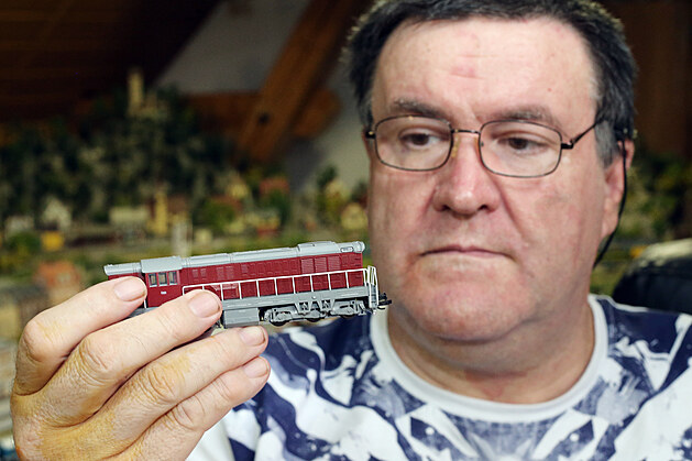 Jaroslav Navrátil z Vrčeně u Nepomuku léta buduje v podkroví svého domku rozsáhlé modelové kolejiště. (7. 9. 2021)