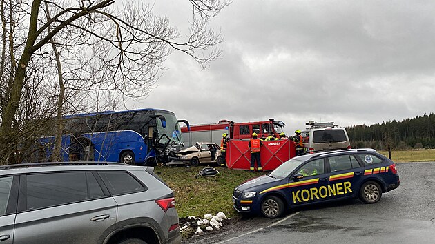 Tragická nehoda se stala v pátek před polednem u Nepomuku na Plzeňsku. V osobním autě po srážce s autobusem zemřel starší řidič. (3. února 2023)