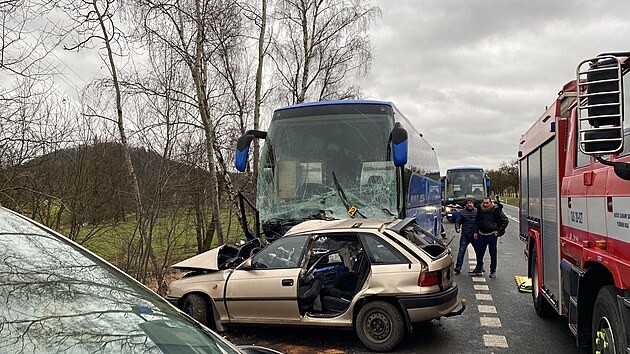Tragická nehoda se stala v pátek před polednem u Nepomuku na Plzeňsku. V osobním autě po srážce s autobusem zemřel starší řidič. (3. února 2023)