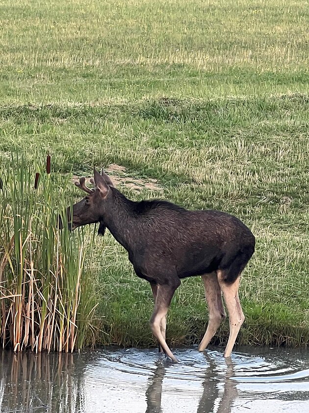 Los evropský zvaný Emil se přišel napít do rybníčku v obci Korytná na Uherskohradišťsku.