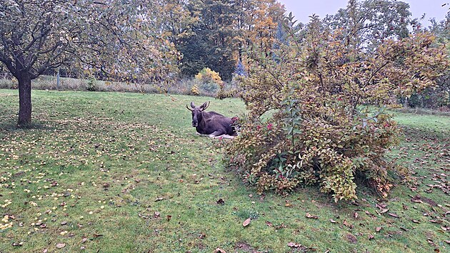 Policisté z Nýrska na Šumavě vyjížděli na oznámení, že na zahradě je los Emil a nemůže ven. Ten si mezitím v klidu pochutnával na jablkách. (13. října 2025)