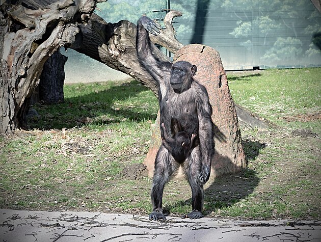 Mládě šimpanze čego v plzeňské zoo. Vzácný sameček se narodil 28. prosince. (13. února 2024)